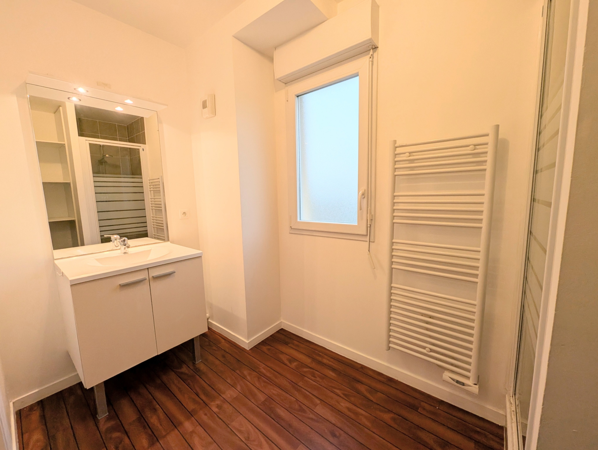 Lasalle d’eau spacieuse comprend :douche, meuble vasque, radiateur sèche serviette, emplacement machine à laver et sèche linge.