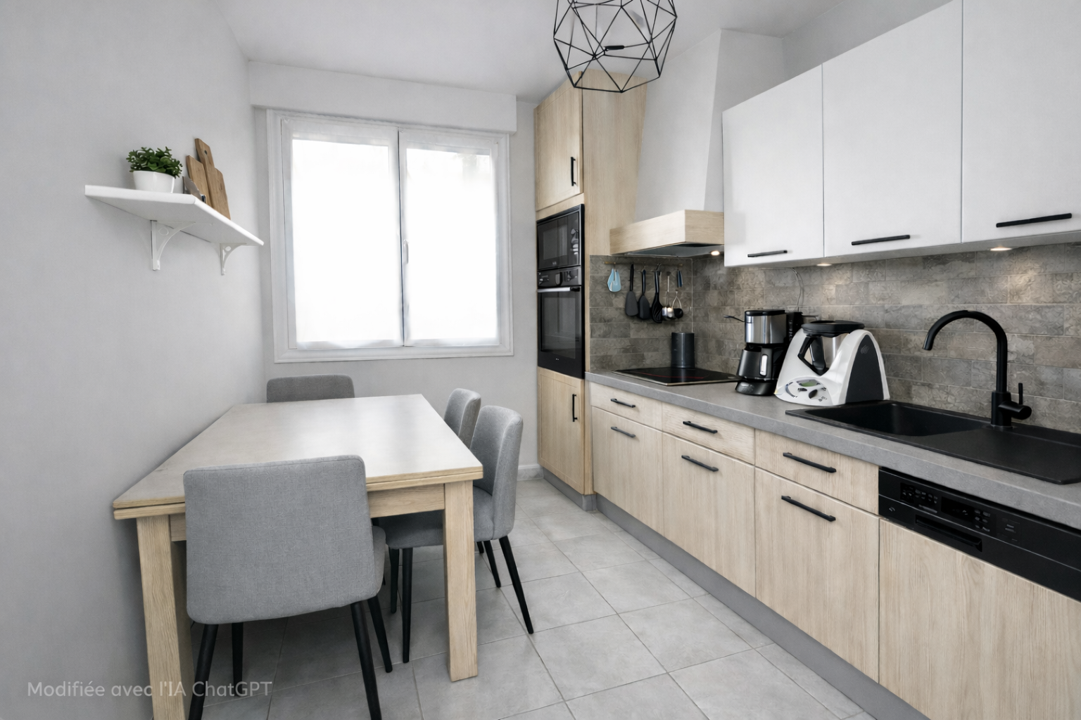 Cuisine fermée de 8,2 m², entièrement équipée. Configuration indépendante permettant de séparer clairement l’espace repas et le séjour.