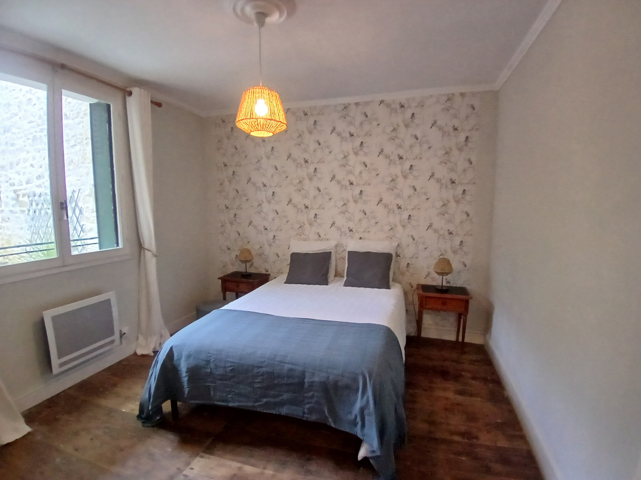 À l’étage, la maison propose trois chambres aux beaux volumes, dont une avec salle de bain-wc privative, ainsi qu’une salle de douche avec WC. Une agréable mezzanine ouvre sur l’extérieur et la cour.
