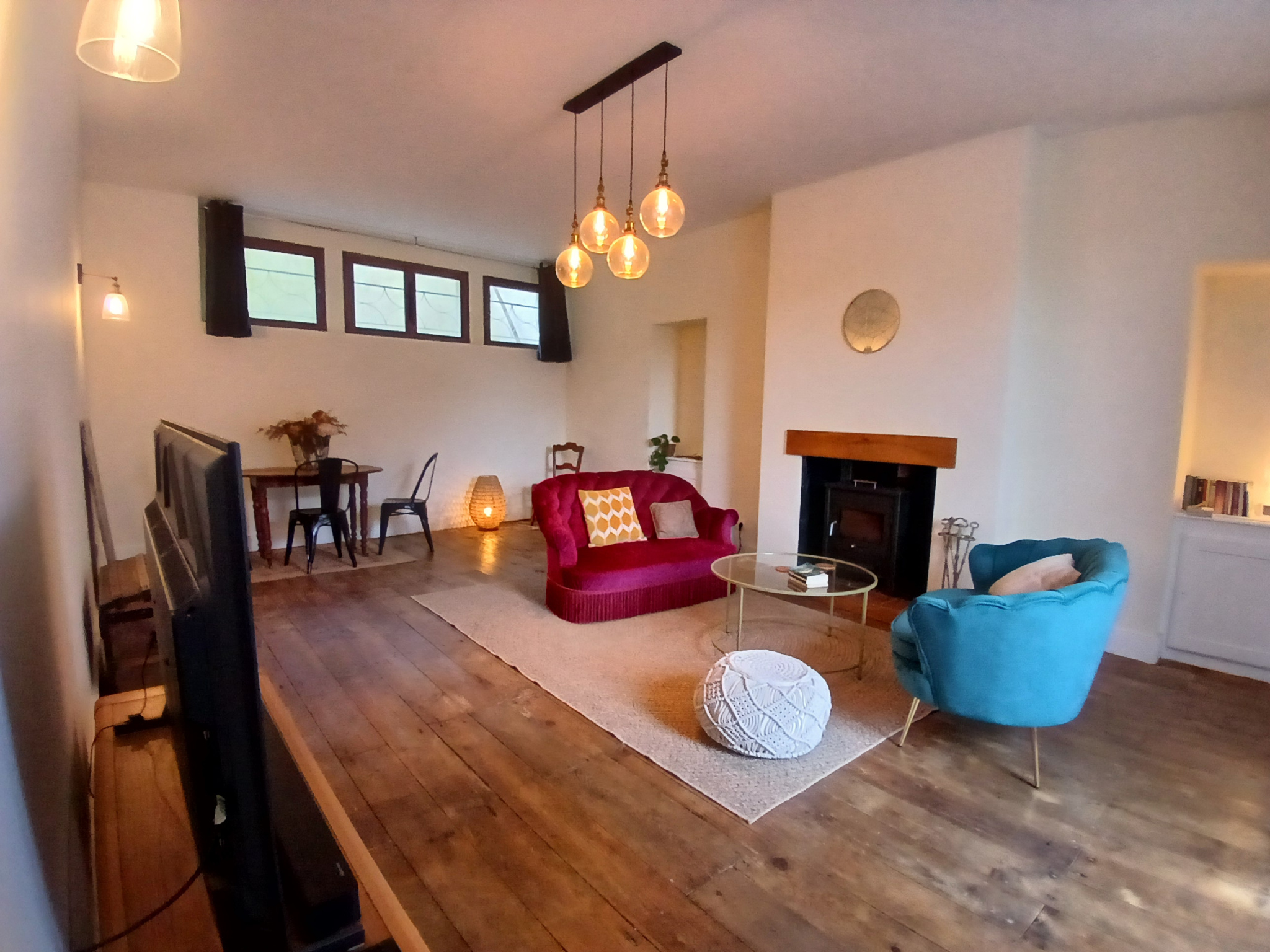 Au rez-de-chaussée, vous découvrirez une entrée desservant un salon lumineux ainsi qu’une belle pièce de vie chaleureuse avec poêle à bois ouverte sur la cuisine aménagée et équipée. Une pièce et un wc complète ce niveau.
