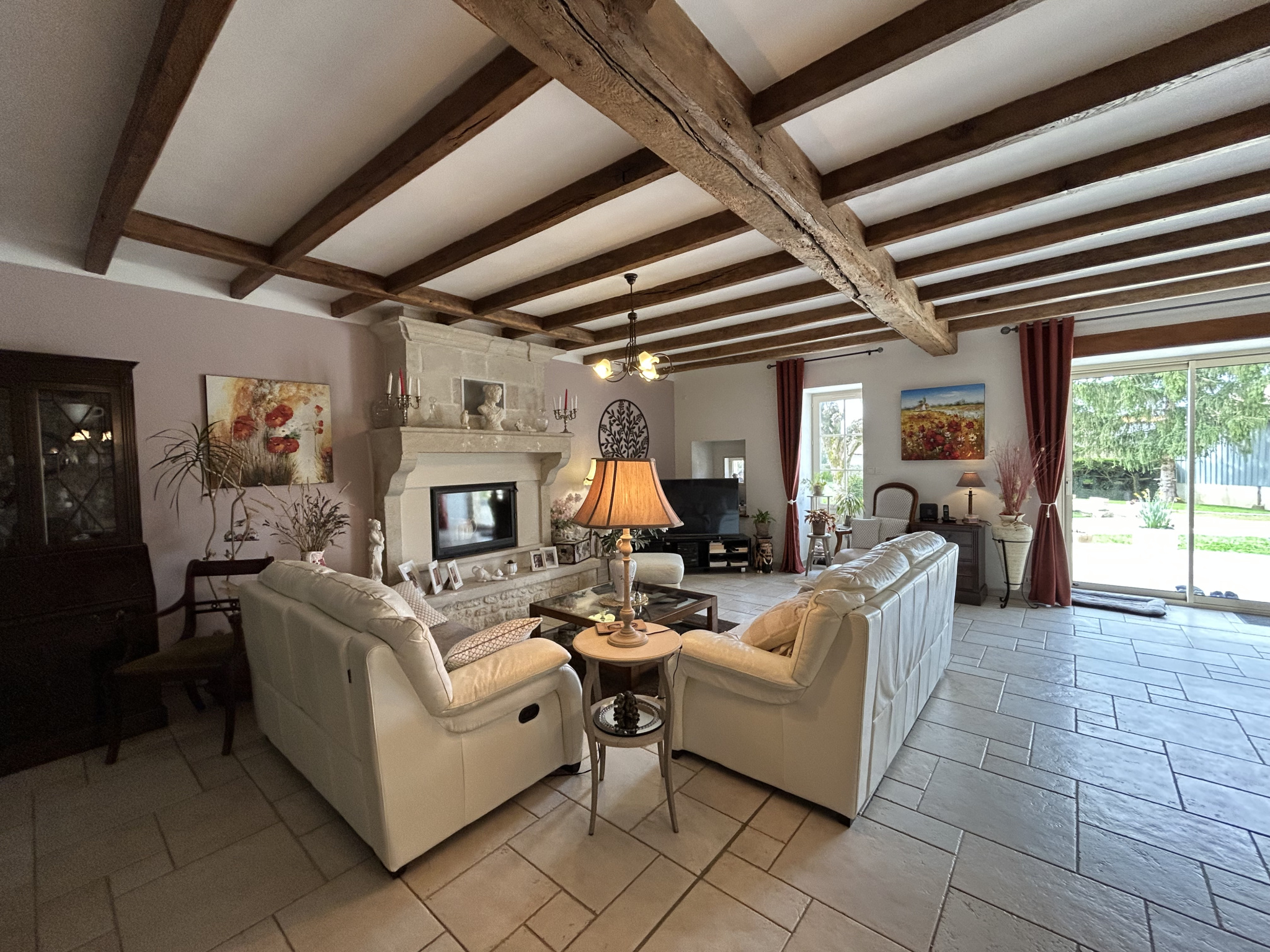 La propriété conserve tout le charme des maisons de caractère avec ses belles pierres apparentes et bénéficie de sols carrelés équipés d’un chauffage au sol, apportant un excellent confort de vie.