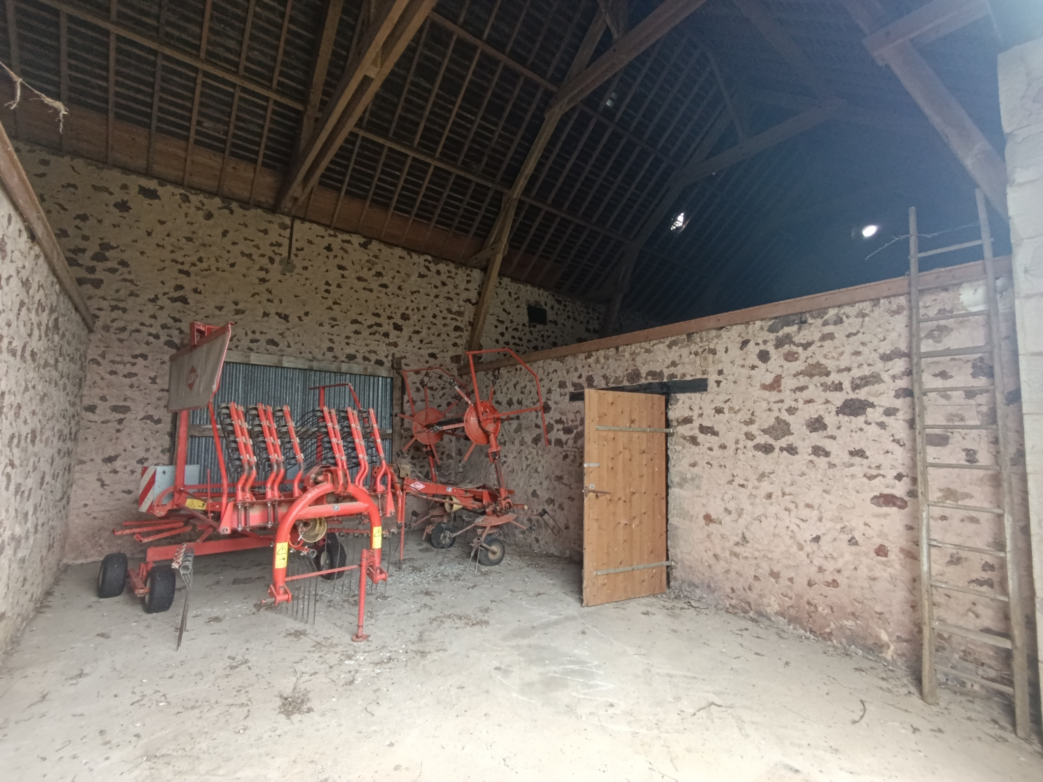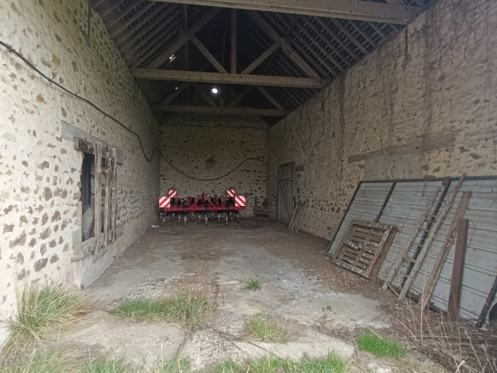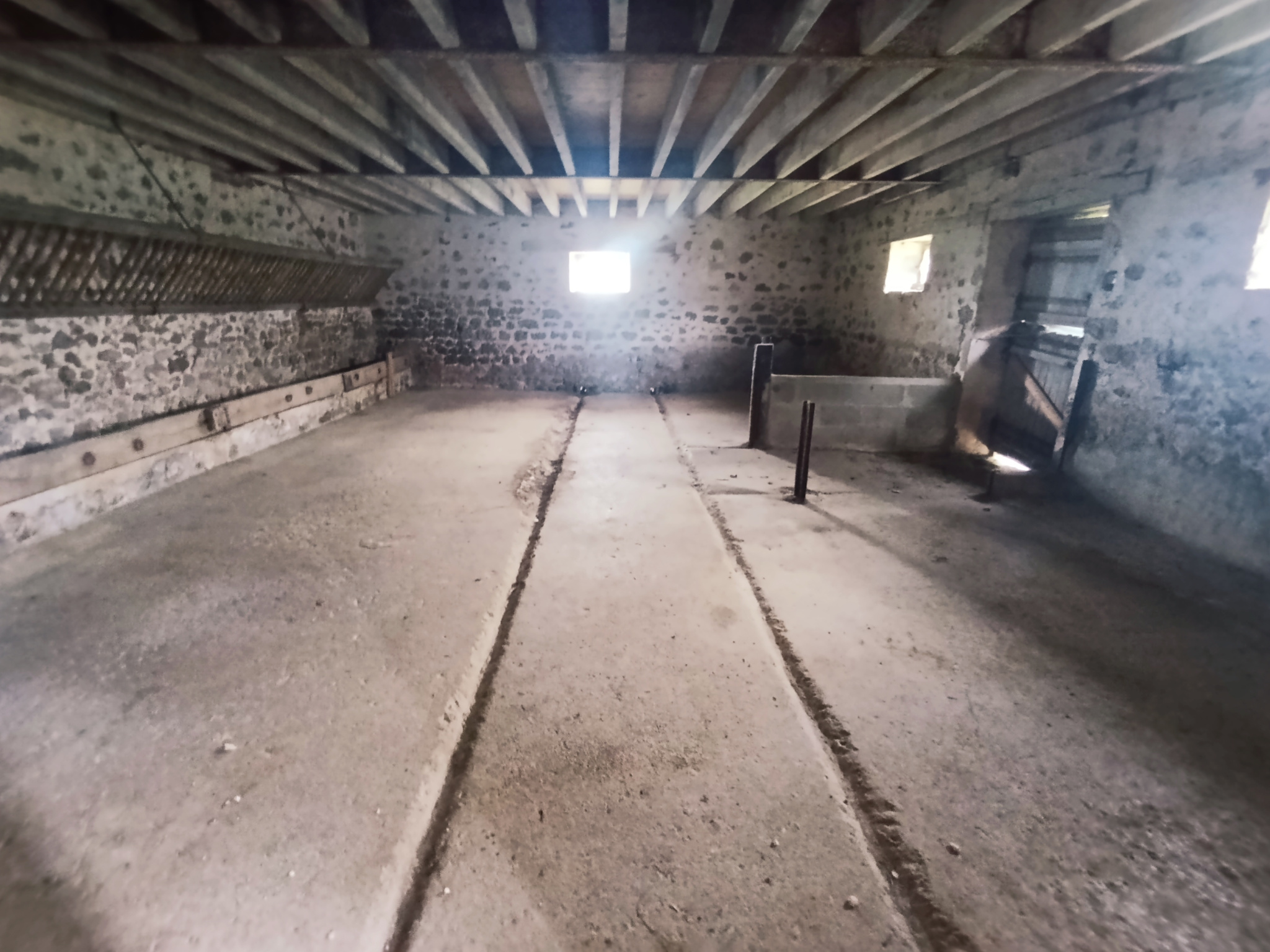 Le premier propose trois grandes pièces avec un grenier sur une partie, une grande porte et une belle hauteur sous plafond, permettant l’accès de véhicules ou l’installation d’un pont si besoin.