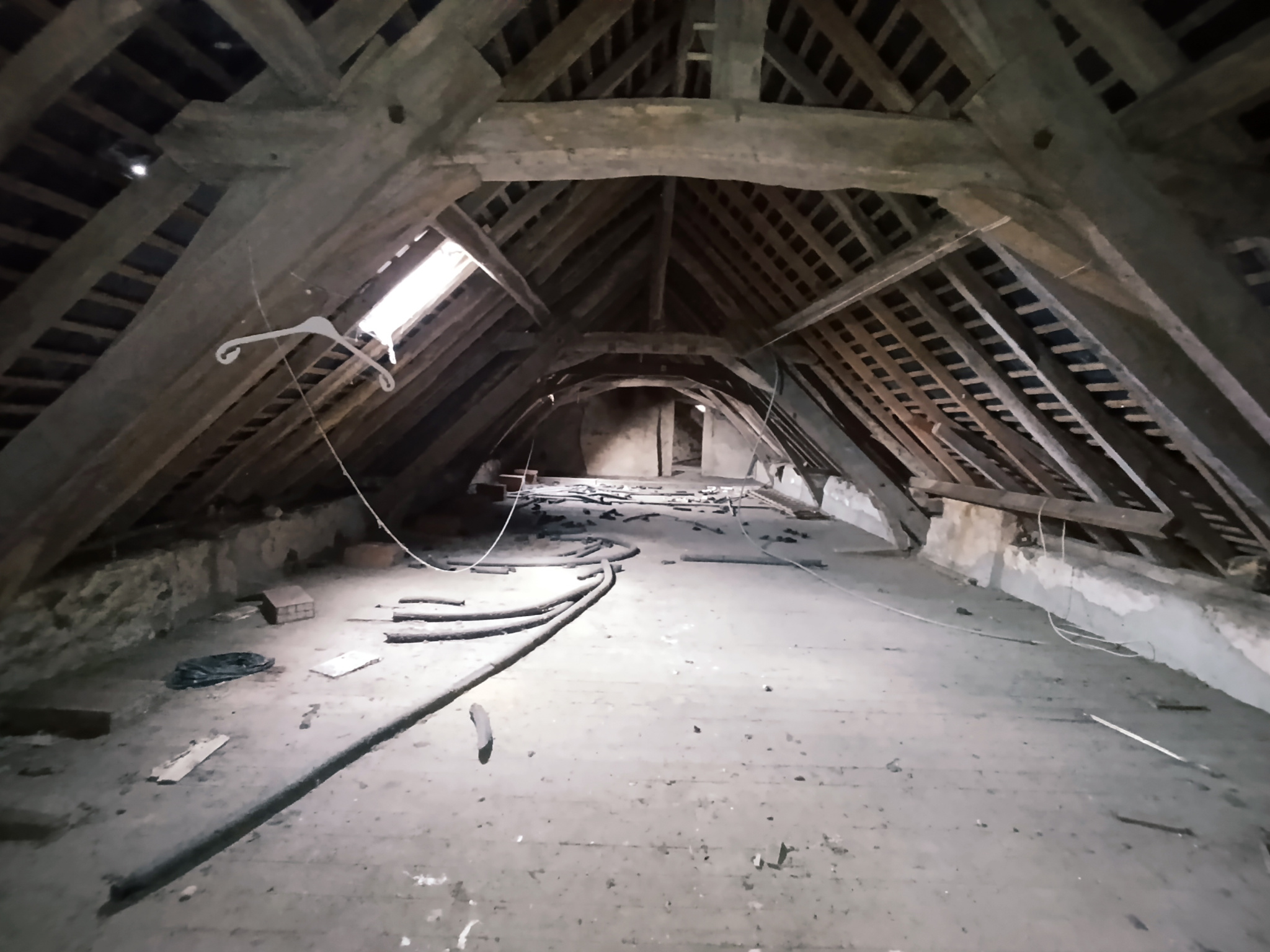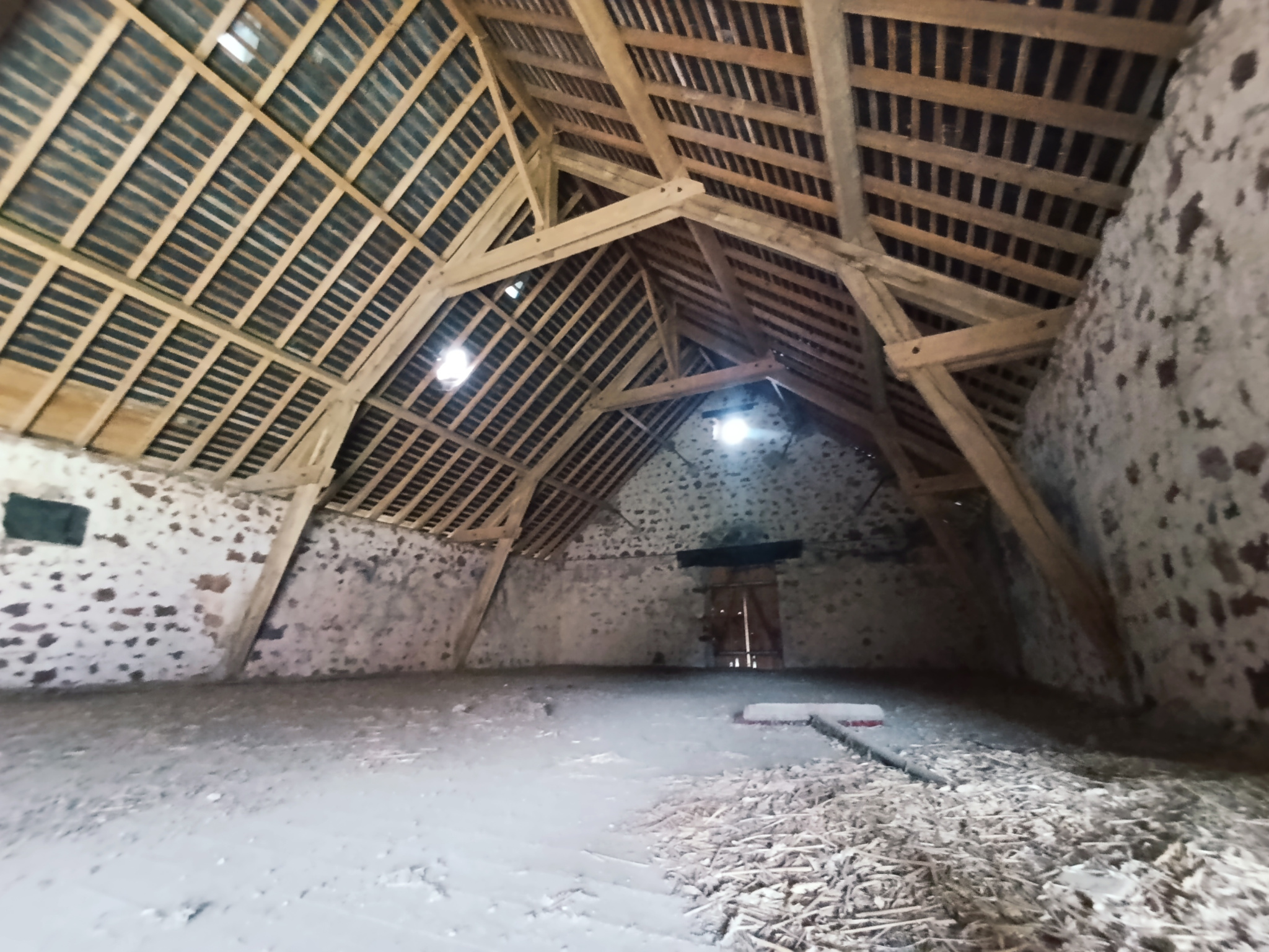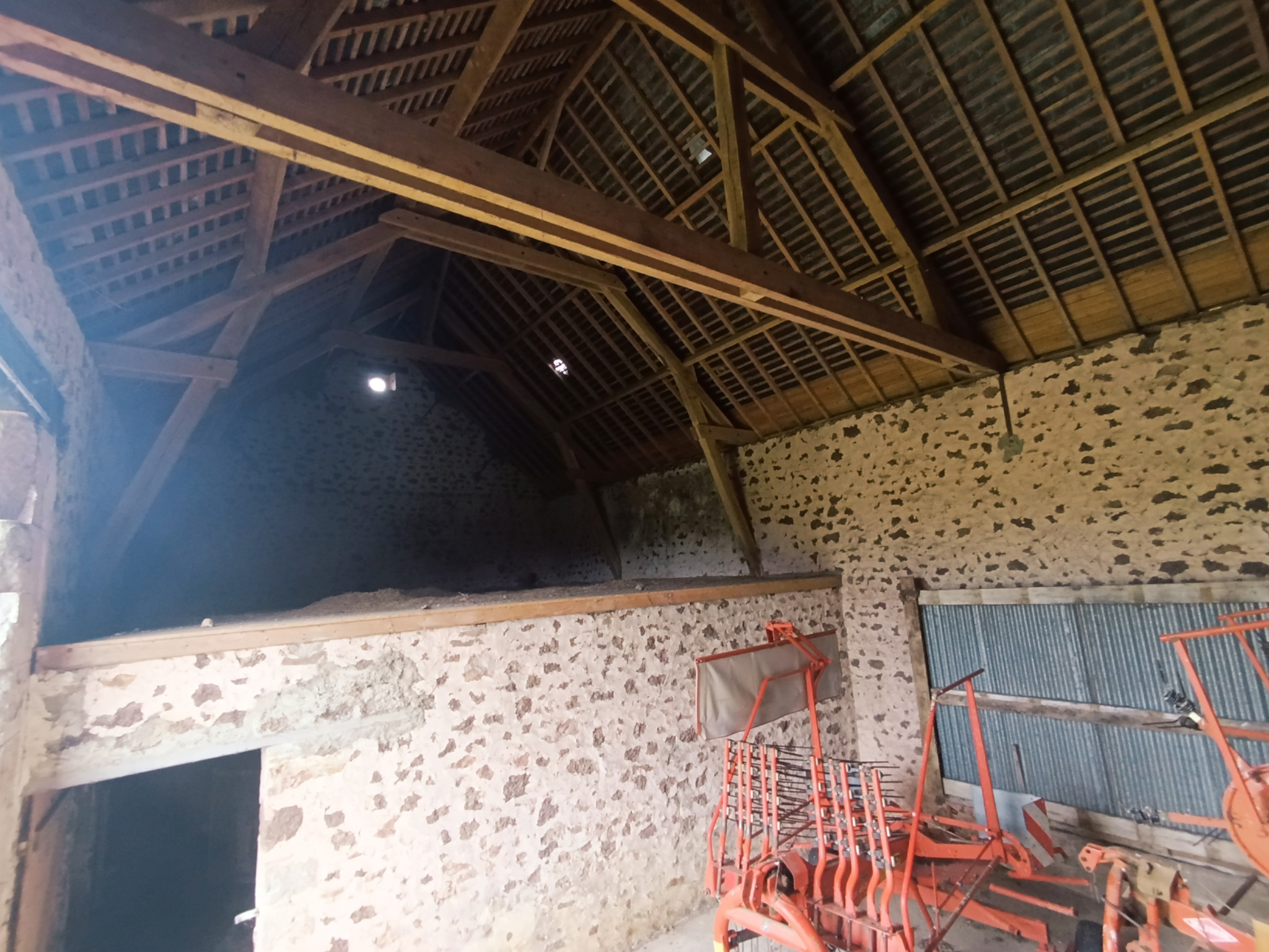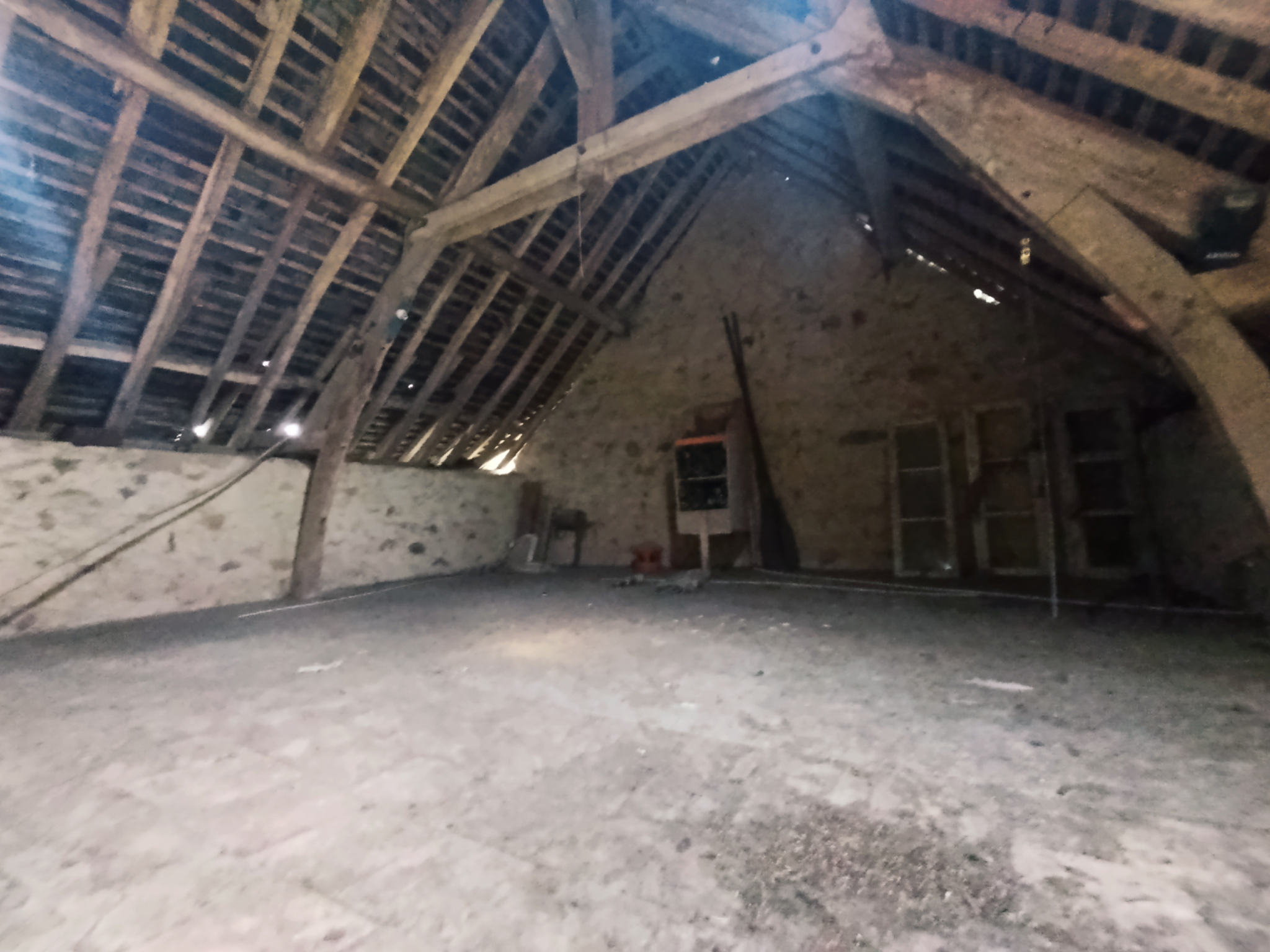 Le premier propose trois grandes pièces avec un grenier sur une partie, une grande porte et une belle hauteur sous plafond, permettant l’accès de véhicules ou l’installation d’un pont si besoin.