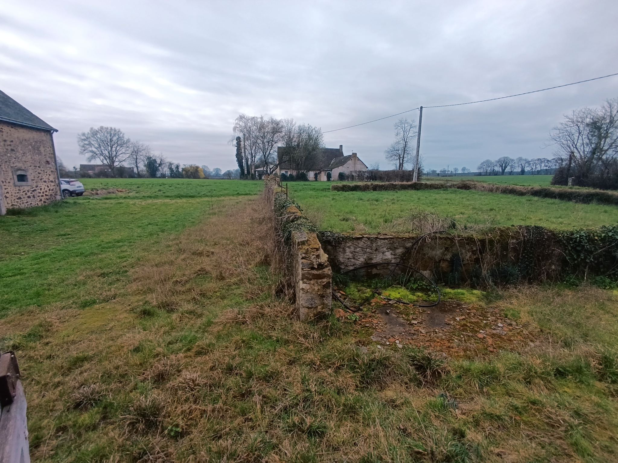L’ensemble est implanté sur un terrain d’environ 6 000 m² (à reborner, donc non clos), plat, avec un puits.