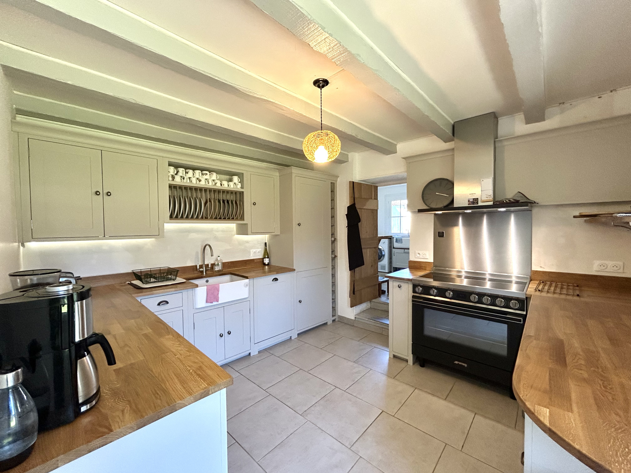 Leading on, there is a beautiful bespoke solid wood kitchen in an English style, fitted with high-end appliances. A separate utility room and a convenient ground-floor WC complete this level.