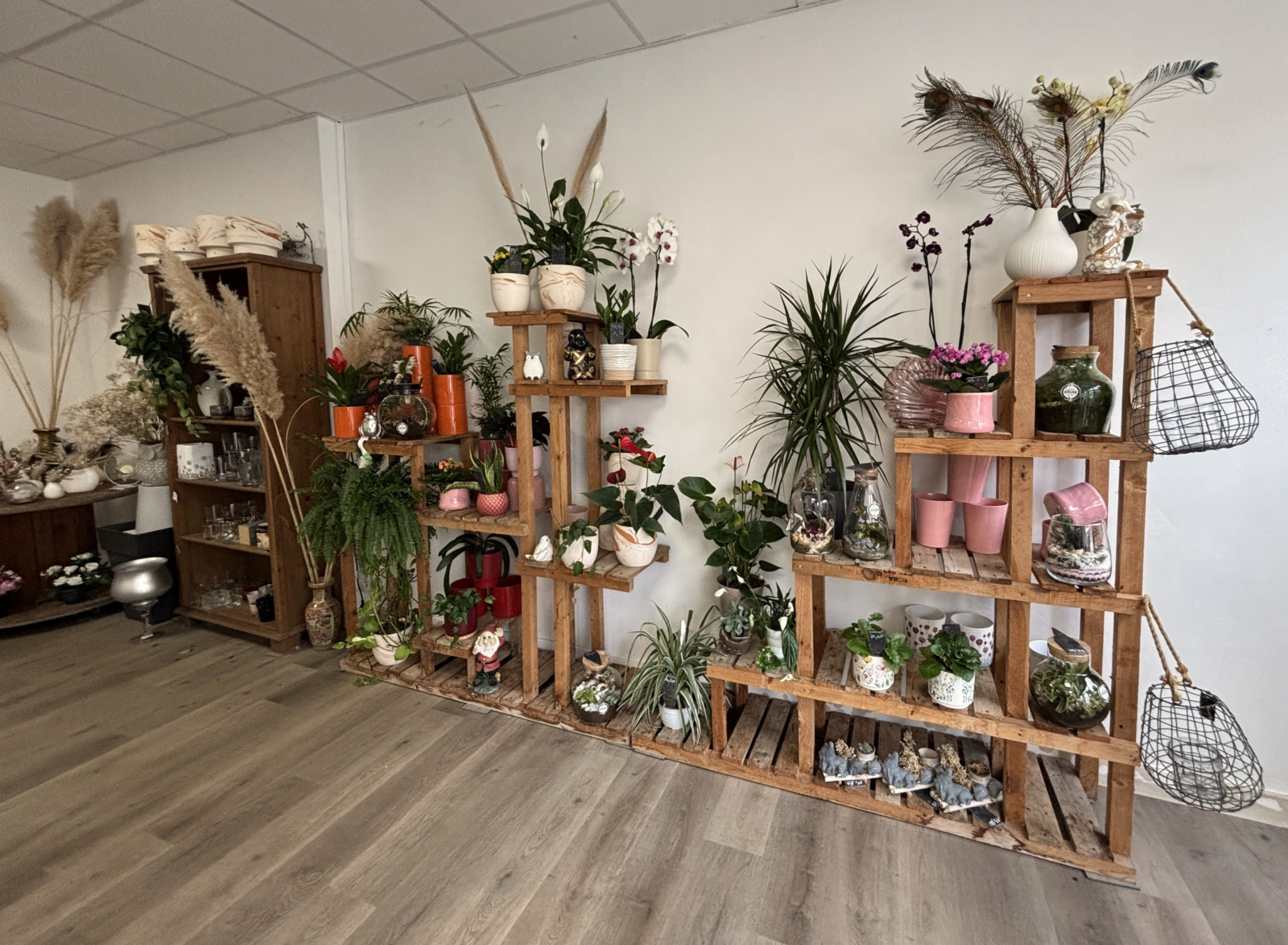 Cette boutique florale, bien implantée, offre bien plus que des fleurs. L’espace de vente, de +60m² , permet d’accueillir non seulement les créations florales, mais aussi des produits locaux soigneusement sélectionnés : bougies artisanales, vins du vignoble environnant, et autres trésors du terroir.
