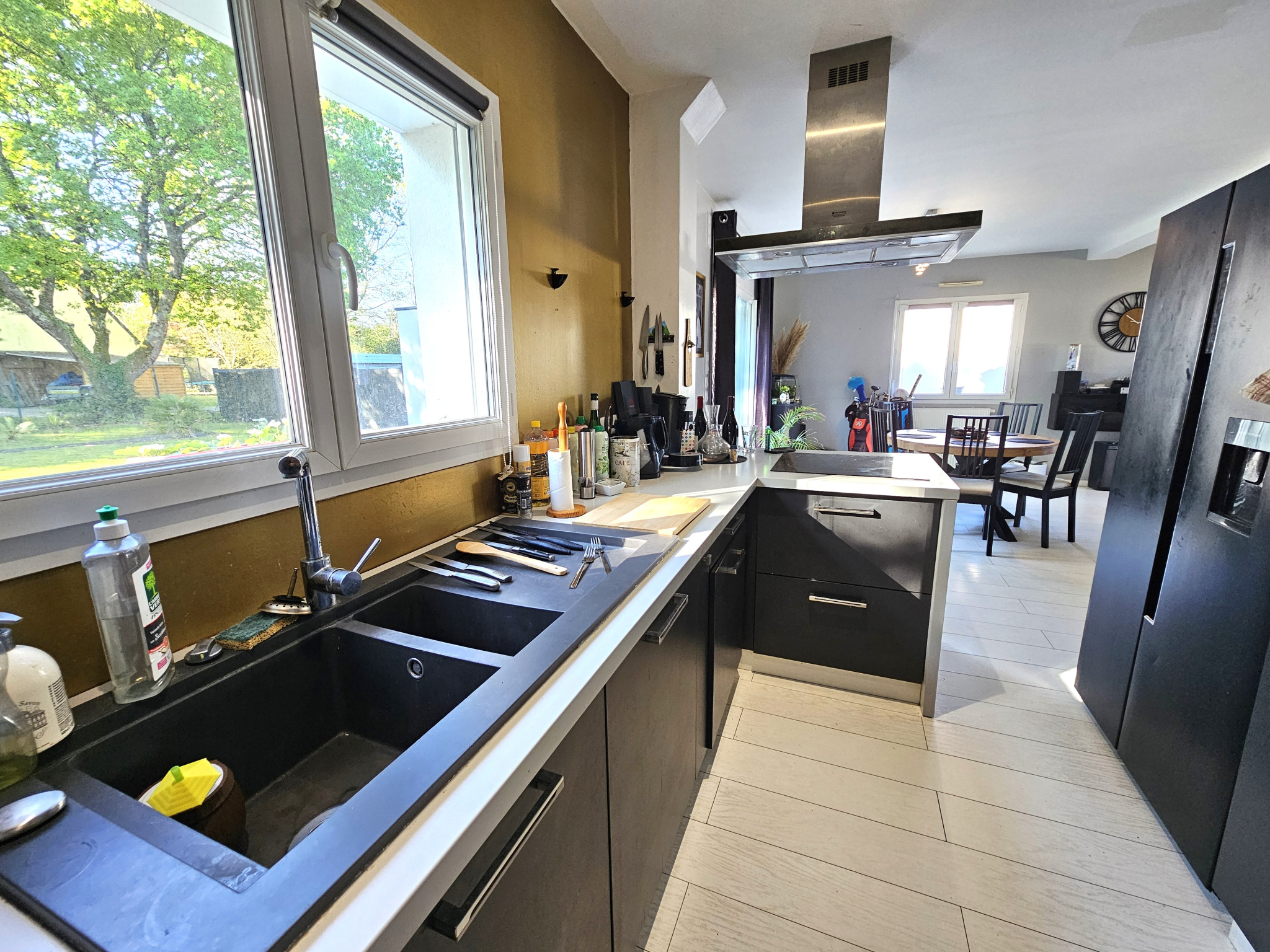 Une pièce de vie idéalement exposée, puis une cuisine équipée et aménagée.