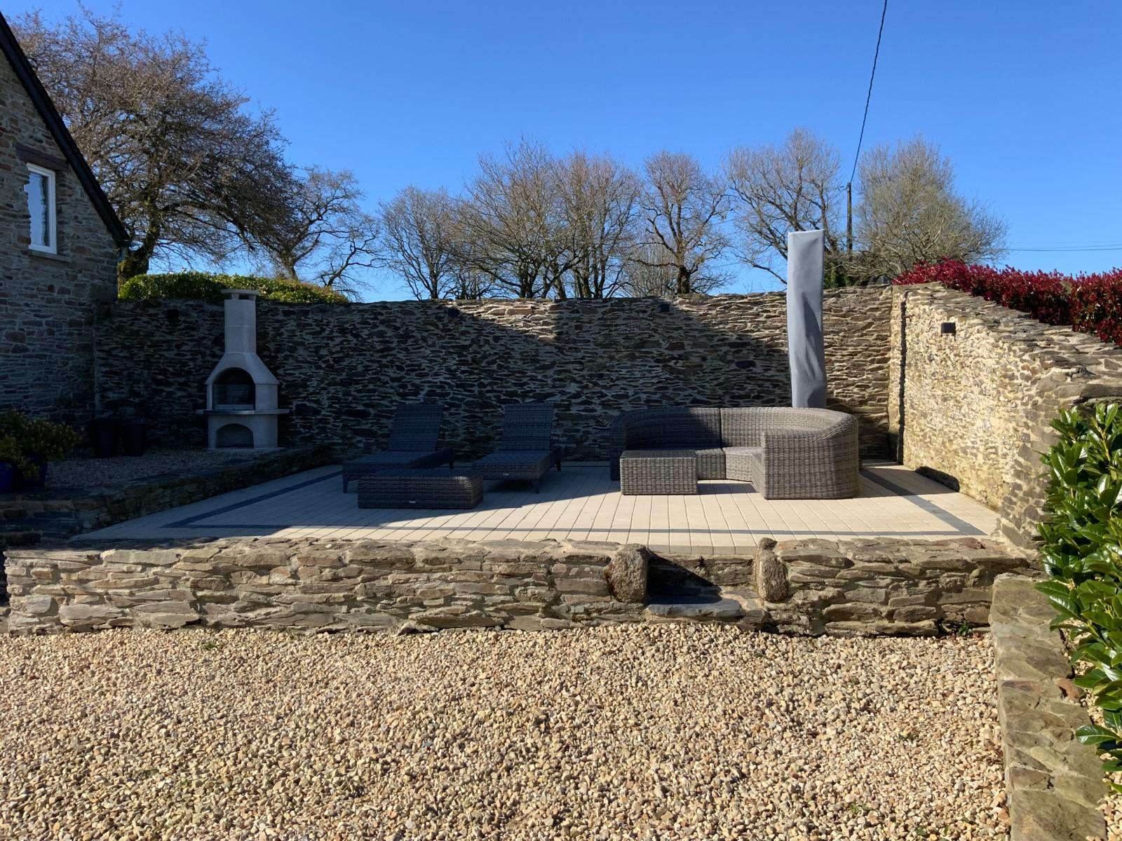 - Deux dépendances neuves : atelier/parking + bûcher ouvert sur terrasse + espace de stockage.