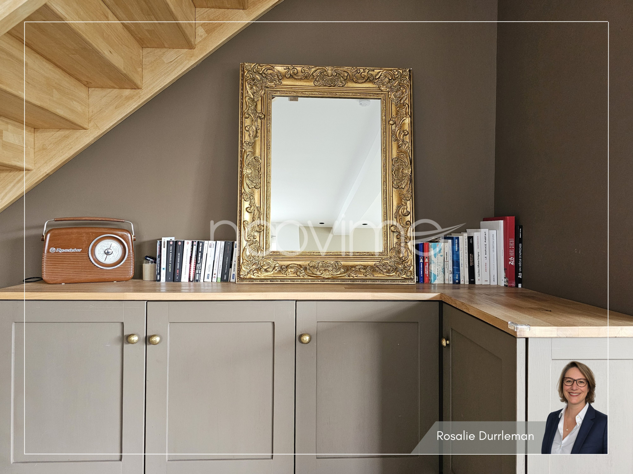 Au rez-de-chaussée, une belle pièce de vie baignée de lumière accueille cuisine, salon et espace repas, avec un accès direct au jardin. Une vraie buanderie et un WC complètent ce niveau.