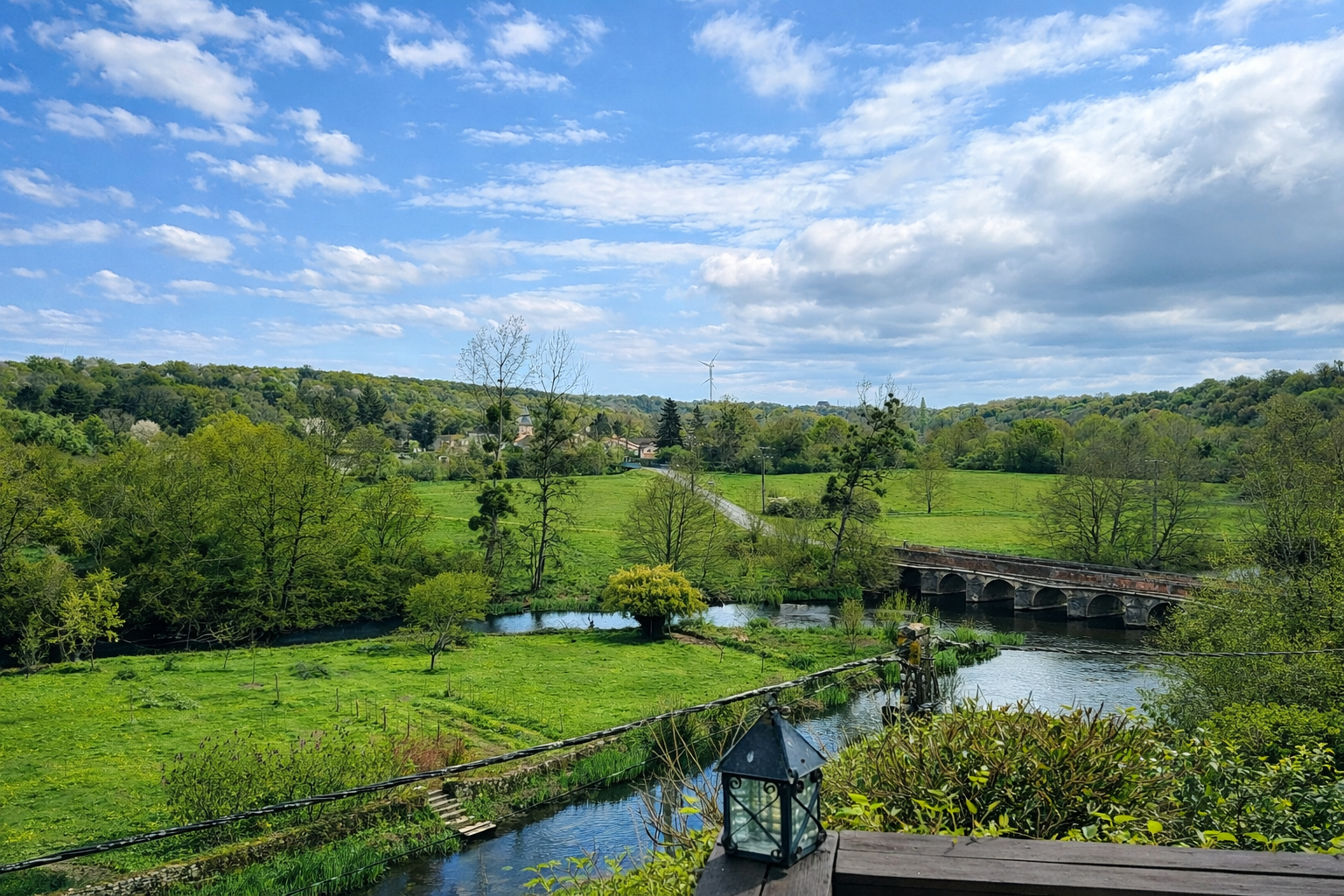 Située en position dominante au dessus de la rivière et la campagne environnante, cette maison de caractère allie charme traditionnel et confort moderne. Avec sa façade en pierre, ses volets et son jardin paysager, la propriété bénéficie d’un cadre paisible et pittoresque.