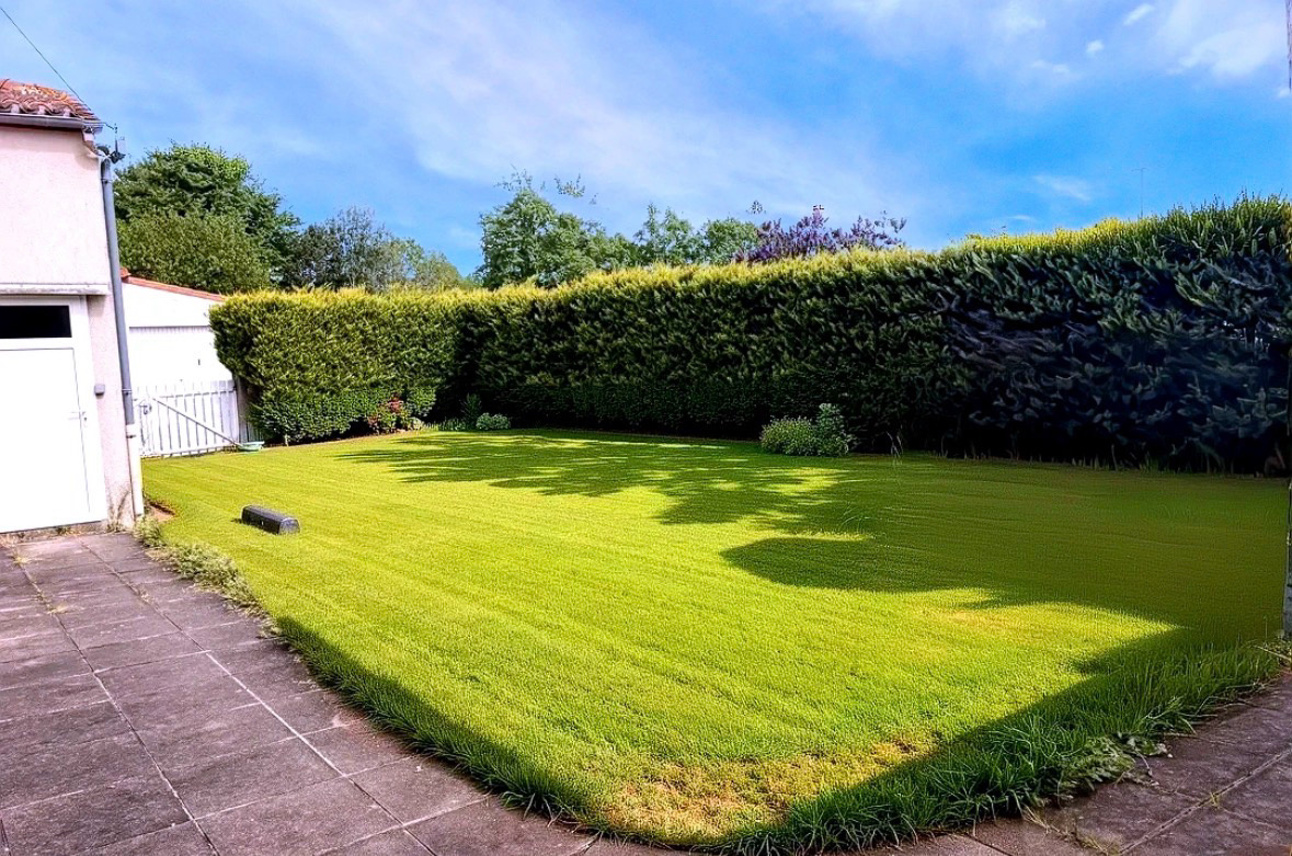 À l’extérieur, le jardin propose un cadre agréable pour profiter des beaux jours.