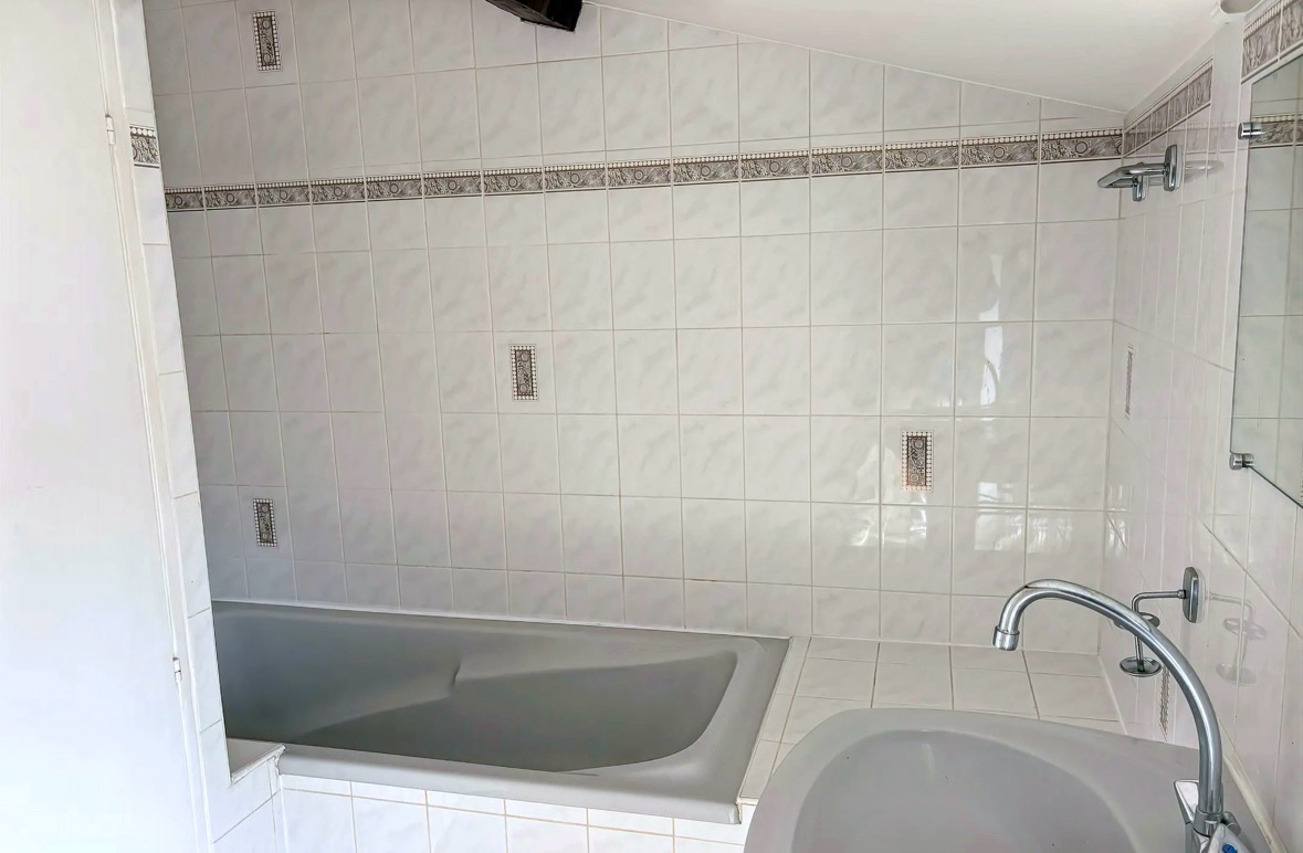 À l’étage, vous trouverez deux petites chambres, proches des 9 m², ainsi qu’une salle de bain.