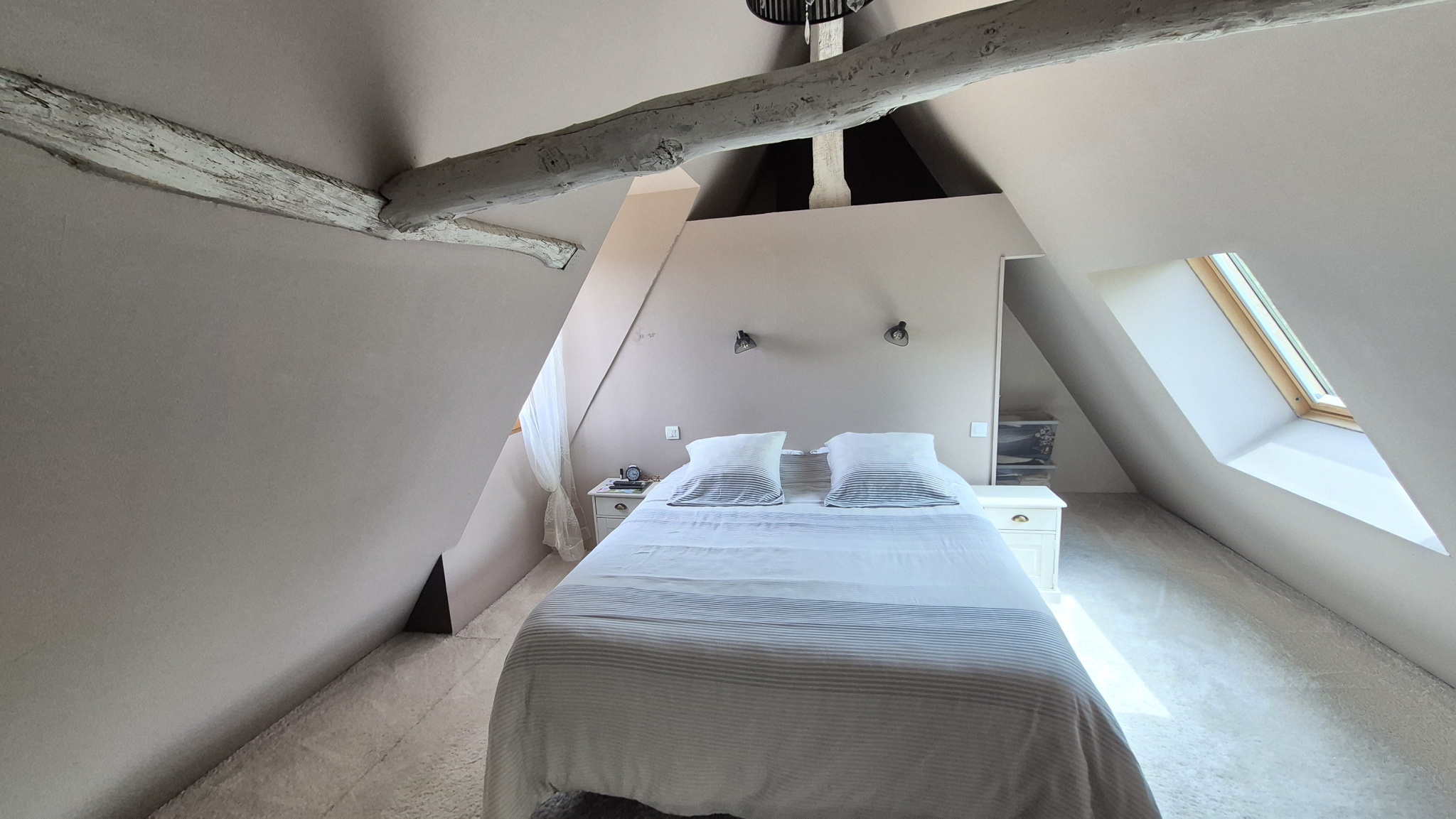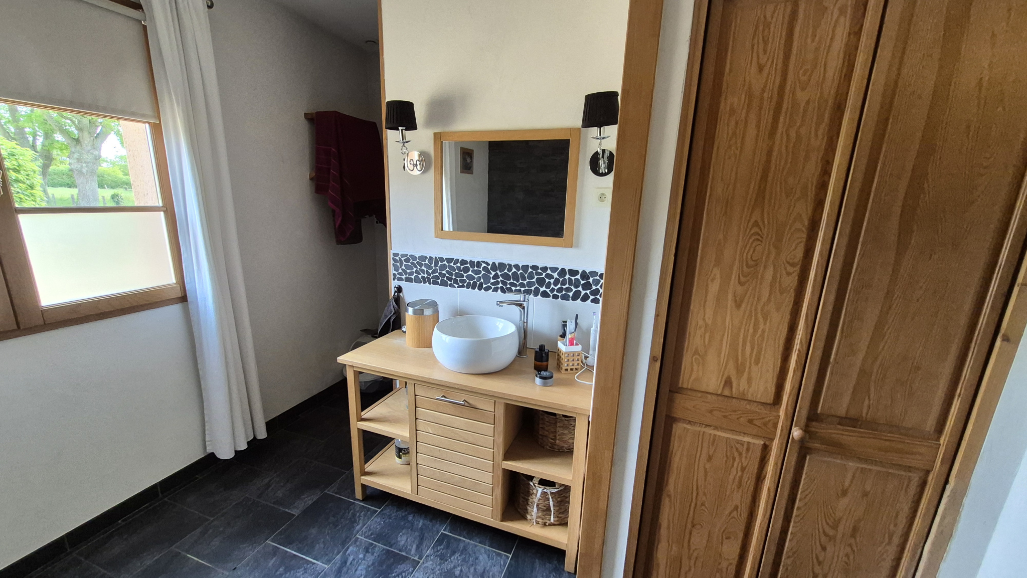 À l’étage, vous découvrirez une suite parentale comprenant une chambre, un dressing et une pièce d’eau avec lavabo et toilette.