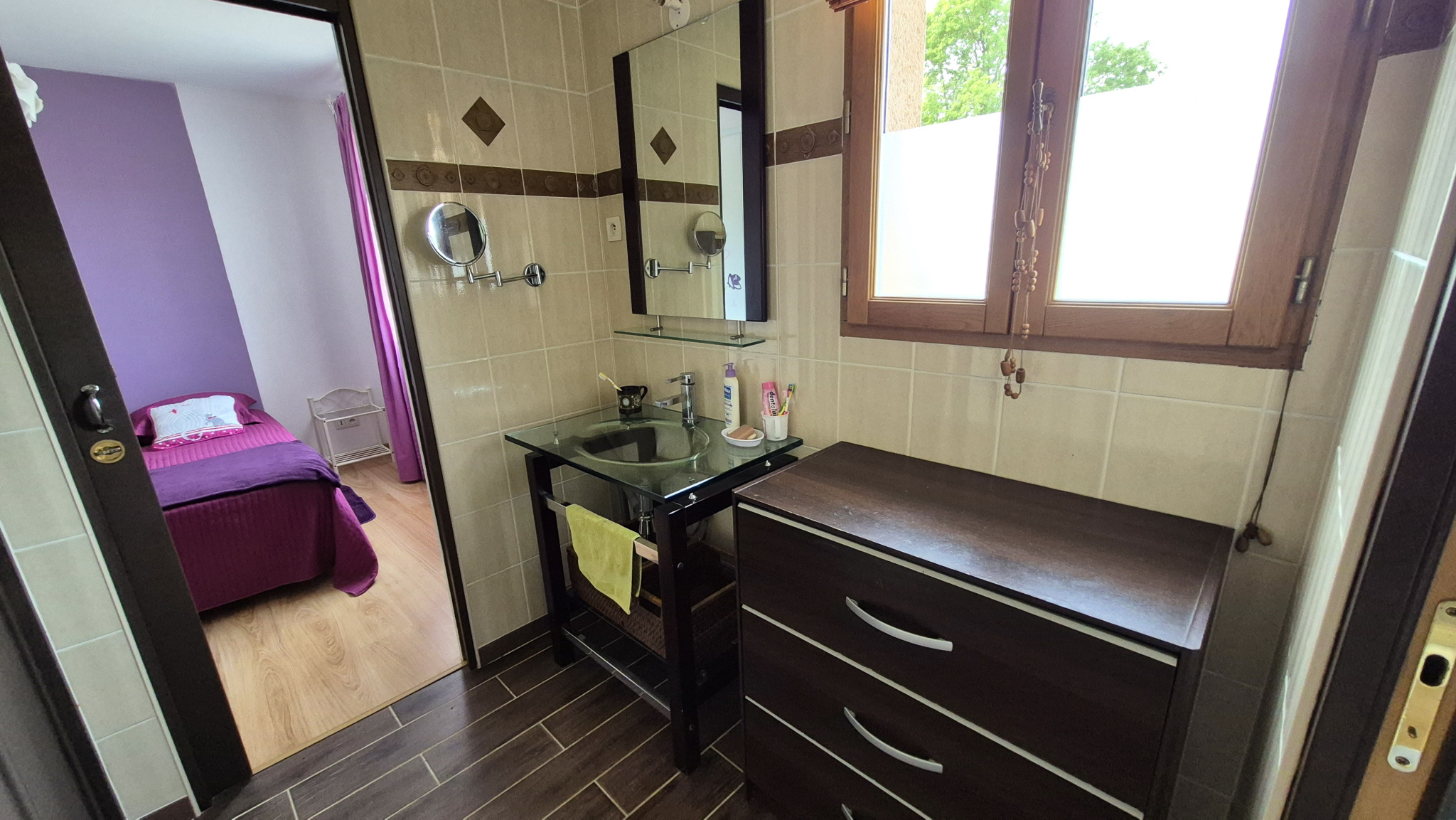 La maison se compose d’une spacieuse pièce de vie avec salon-séjour, cuisine ouverte et salon indépendant. Un couloir dessert quatre chambres, deux salles de bain dont une privative pour deux chambres, ainsi que deux toilettes au rez-de-chaussée.