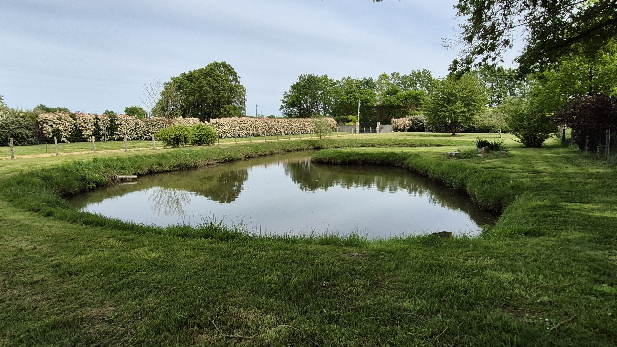 À l’extérieur, le cadre est particulièrement agréable avec un étang, une piscine, un abri piscine, un double carport, un atelier et une dépendance fermée pouvant facilement être aménagée en studio, bureau indépendant ou espace d’accueil.