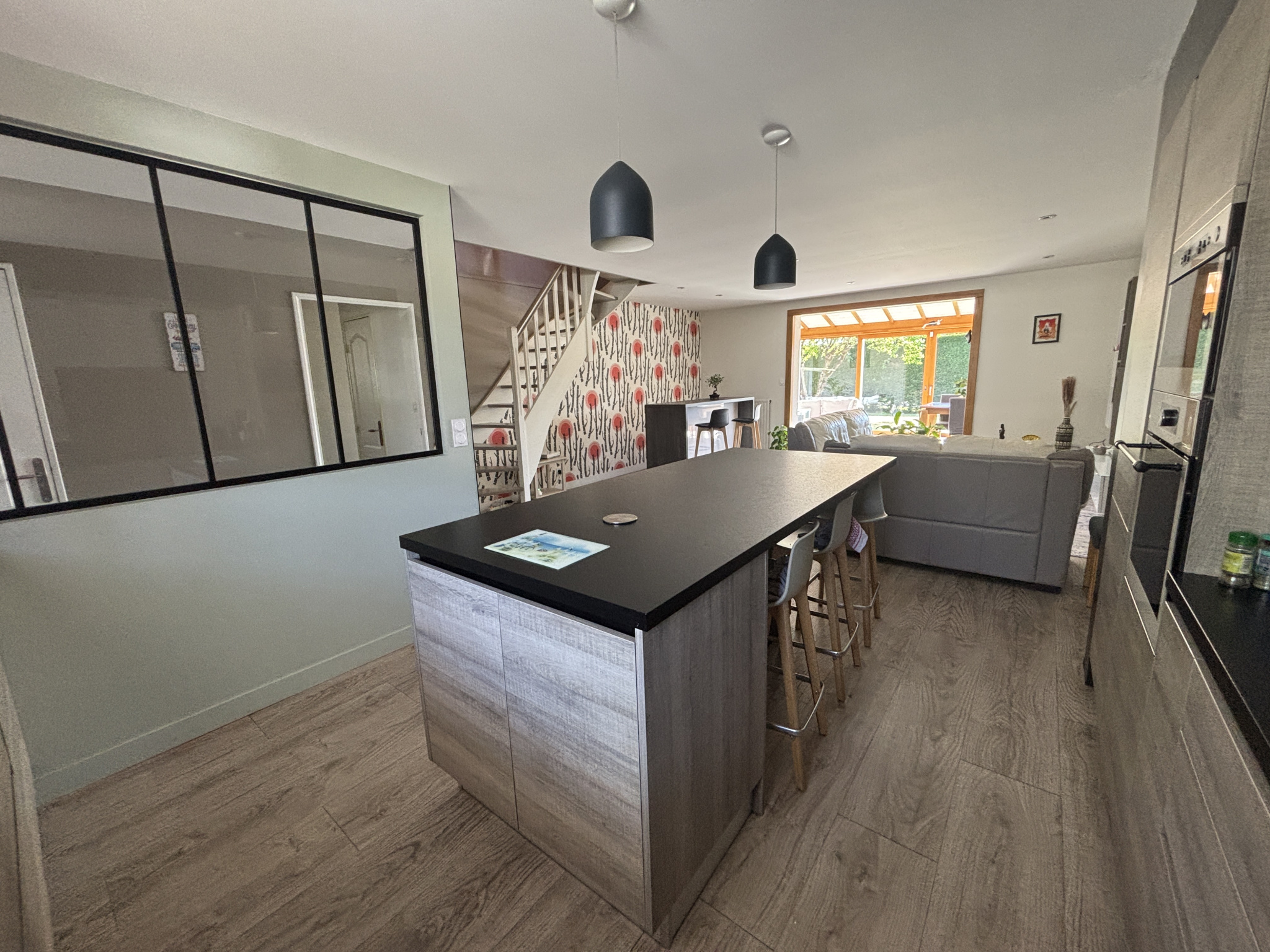 Dans un secteur calme et résidentiel décourvrez cette maison familiale comprenant une entrée, la cuisine ouverte équipée et aménagée, une buanderie, la pièce de vie avec un espace bar.