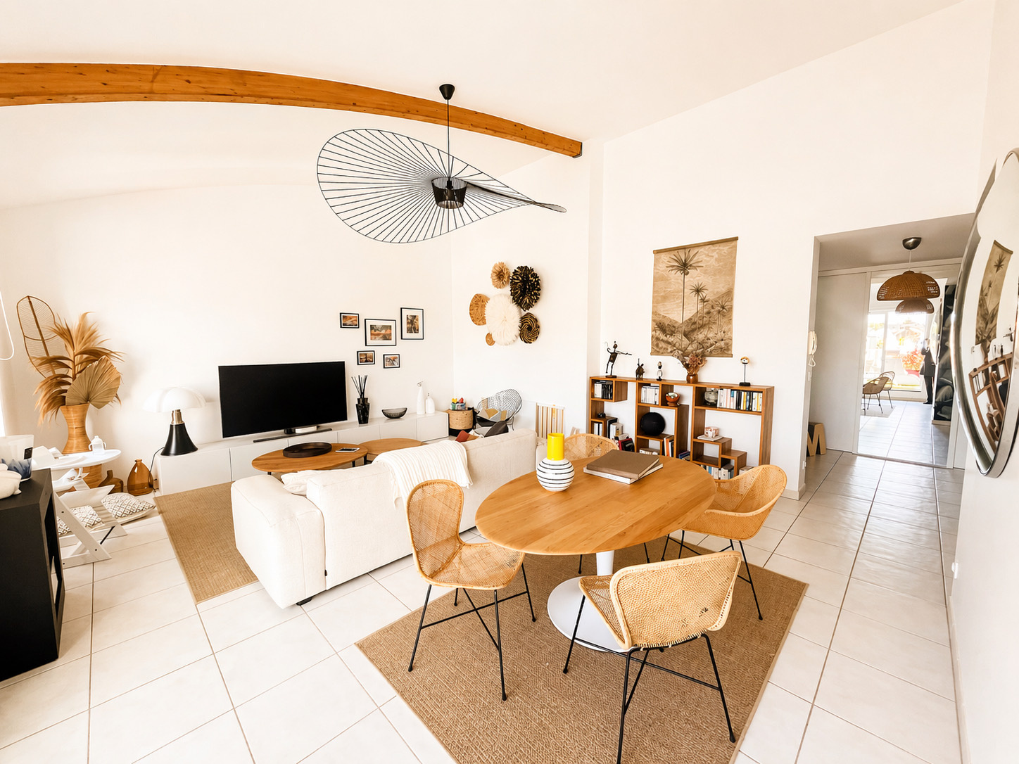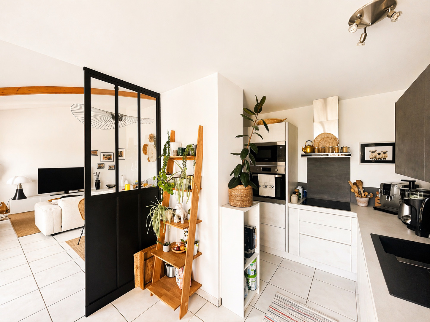 La pièce de vie, spacieuse et baignée de lumière, accueille une cuisine ouverte moderne, parfaitement agencée, le tout donnant accès à une terrasse de plus de 20 m², idéale pour vos moments de détente ou repas en extérieur.