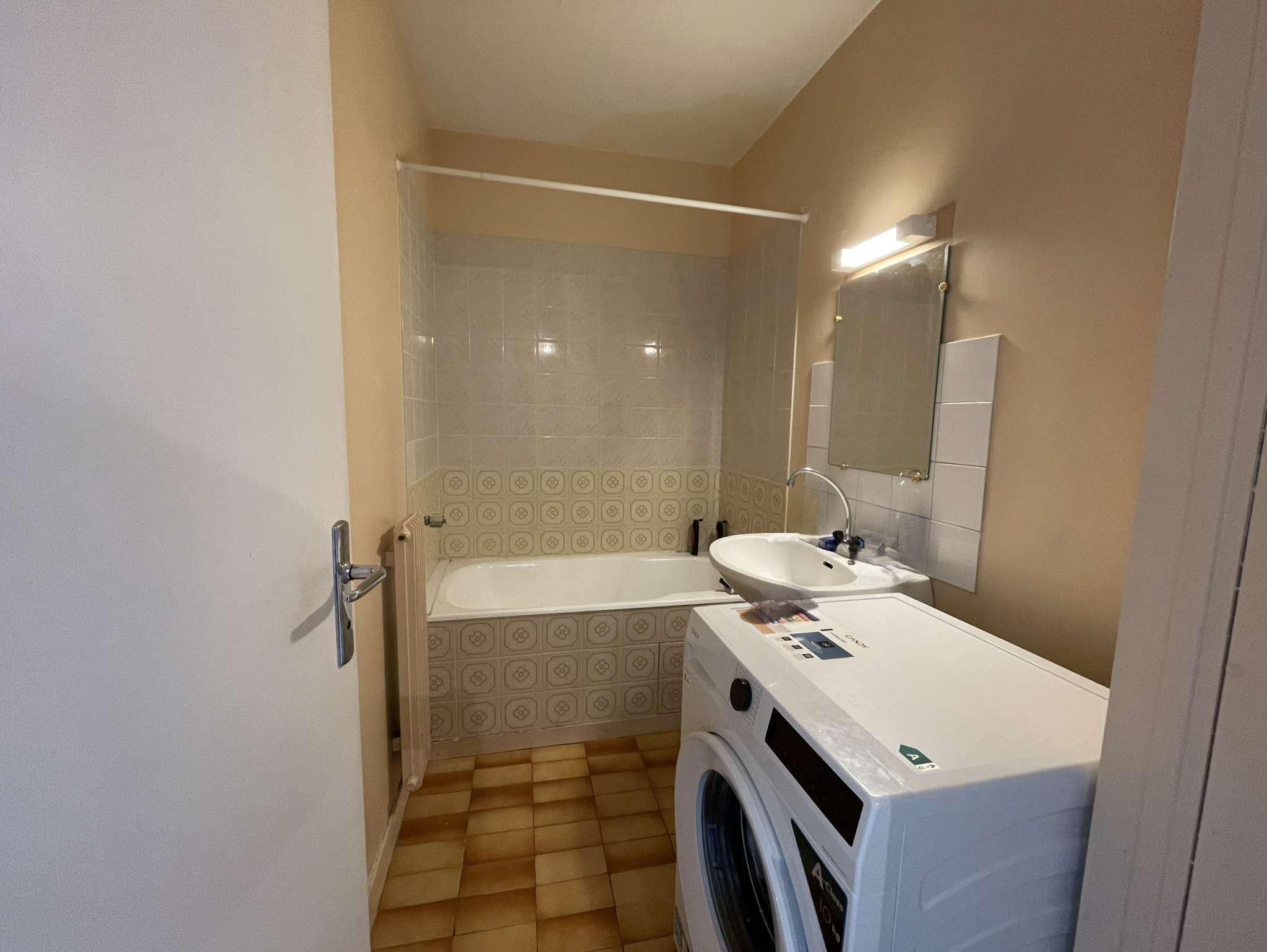 Une chambre et une salle de bain complète l’ensemble, avec des toilettes séparées, apportant une organisation pratique au quotidien.
