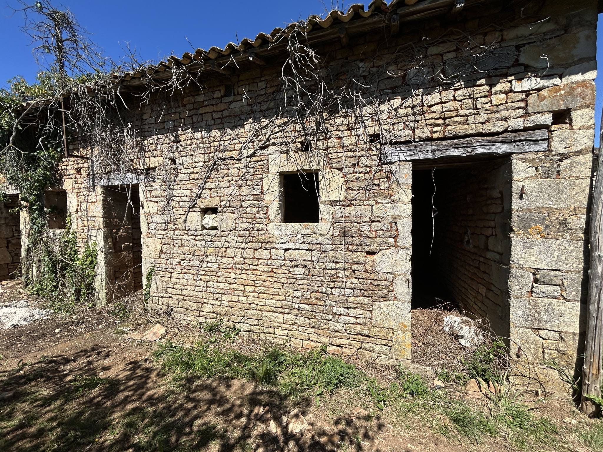 Stone property complex in need of full renovation, set in a quiet rural environment, offering strong development potential on a plot of approximately 2,400 m² arranged around a courtyard and a pleasant garden.