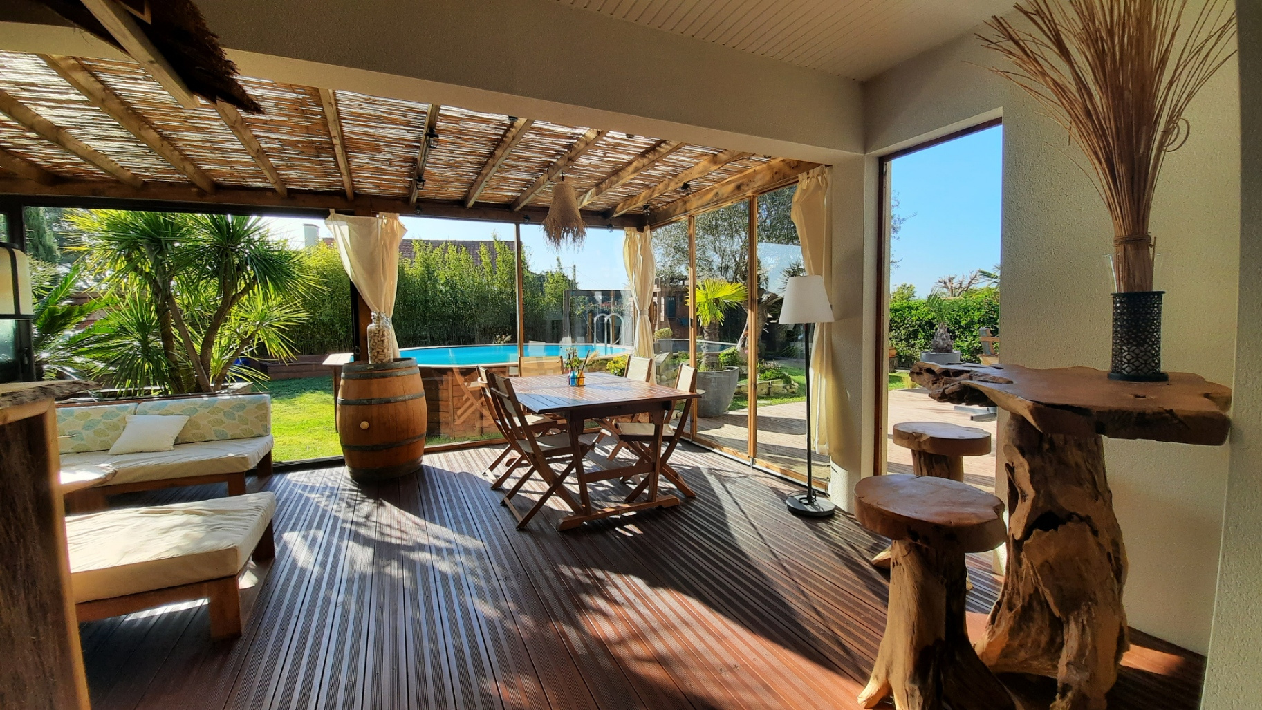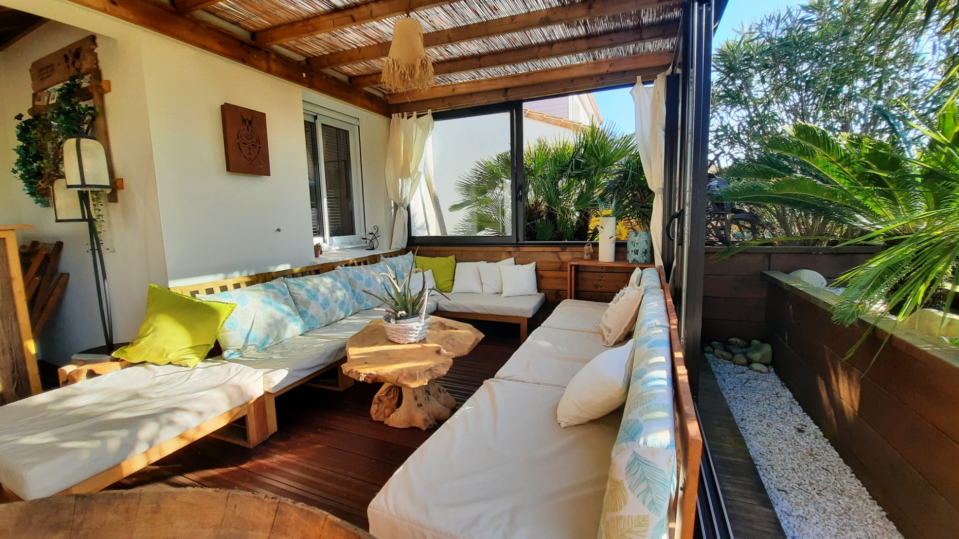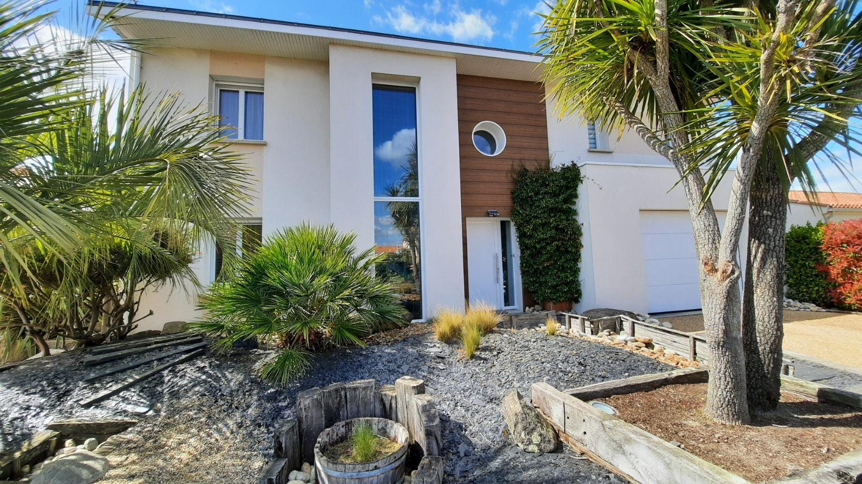 A 10 min à pieds de la plage et des commerces de Tharon Plage, dans un quartier calme et agréable, une maison sur 2 niveaux à la conception atypique.